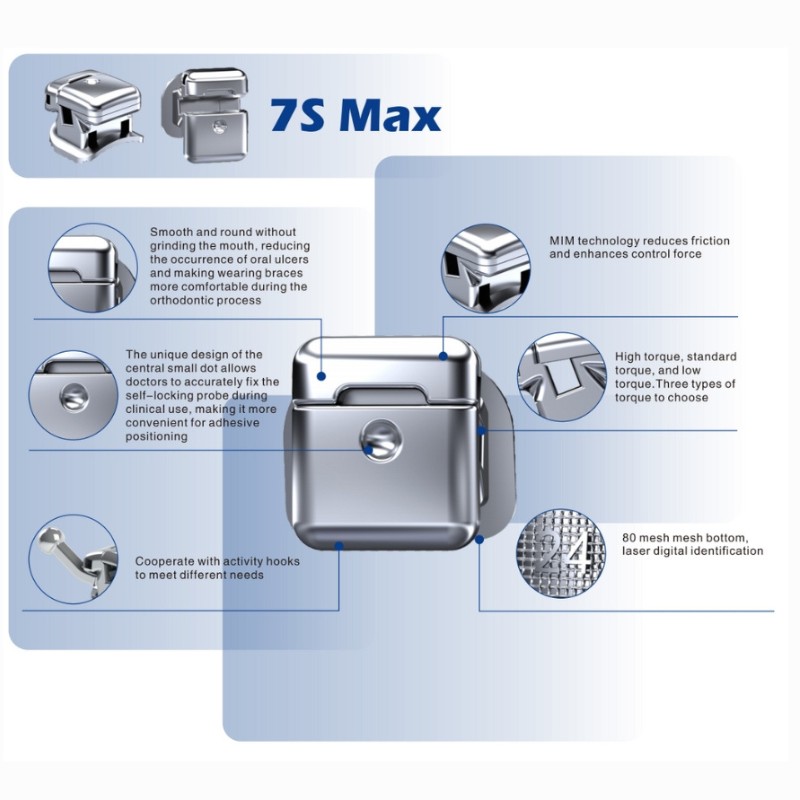 Mắc cài kim loại tự buộc Mim 7S Max .022 hook 3-4-5 được sản xuất bằng công nghệ Mim hiện đại, mang lại độ chính xác cao và độ bền vượt trội trong điều trị chỉnh nha. Thiết kế tự buộc giúp giảm ma sát, kiểm soát lực hiệu quả, kết hợp hook 3-4-5 linh hoạt, phù hợp cho các phác đồ chỉnh nha chuyên sâu.